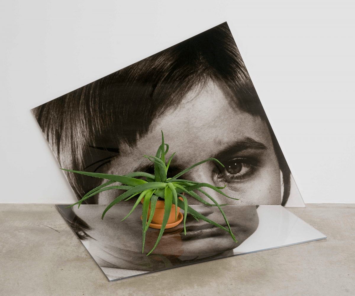 Marlo Pascual creates images and installations that give photographs a new life as objects are removed from the context in which they were taken. Pascual cuts, folds, impales, and situates the enlarged prints in minimalist assemblages that employ props such as large rocks and plants, coat racks, and fluorescent lights. She highlights the fragility of the image and takes the photograph out of the realm of the two-dimensional world into the three-dimensional world.