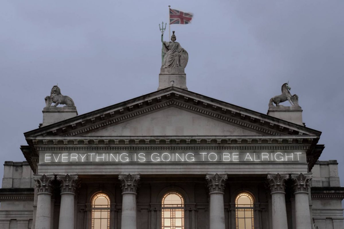 It characterises his desire to communicate and interact with the viewer – to create a reaction and stir an emotion. For Creed, experience is fundamental to understanding his work and he asserts that his art is “50% about what I make and 50% about what other people make of it.” His work is often playful and minimalist and ‘Work No. 975 EVERYTHING IS GOING TO BE ALRIGHT’, blazoned across the Gallery’s frieze, operates in a similar vein. Visually spectacular in its neon audacity, the work, however, encourages a more contemplative response. Although it is at first an overtly familiar and reassuring phrase, it plays on our personal insecurities and gently suggests that everything might not be alright.