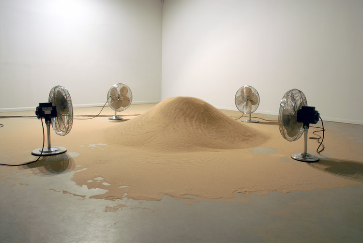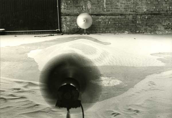 'Getting back to your questions about the early work - Sand/ Fans came before everything. Later, I moved through this whole mechanical period, when I was using industrial architecture and machines and movement. In Sand/ Fans I had these big industrial fans blowing sand, and I was talking about a sort of transience- the edges of things were fluid; there was an ephemeral quality.'