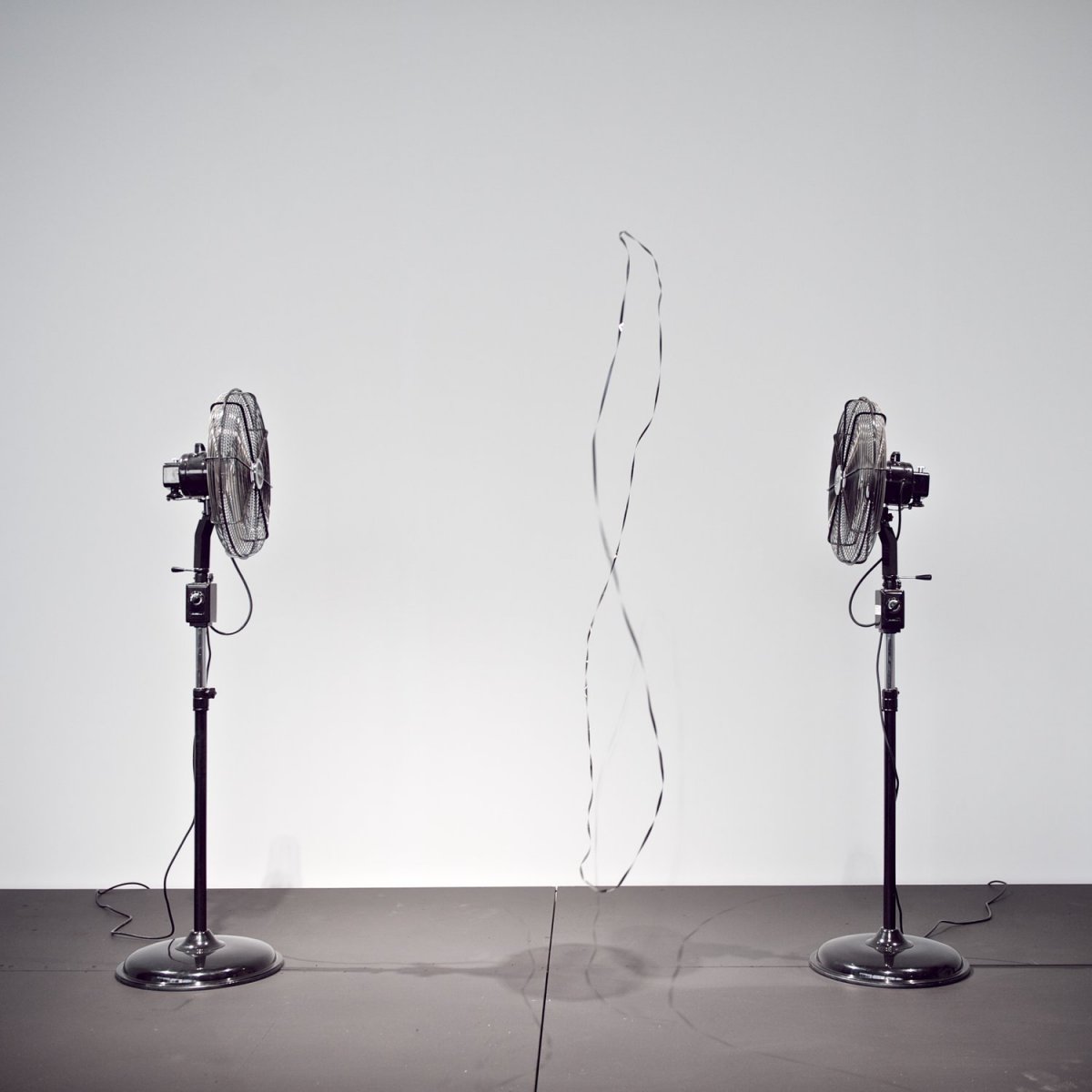 KEMPINAS: Exactly. Flying Tape is one gigantic loop the size of the room, capable of levitating in midair, held up by the wind of several industrial fans. It’s a self-balancing sculpture that constantly changes its shape but without ever losing its circular structure. It’s a sculpture without a pedestal, and it’s not hanging from the ceiling or standing on the floor. It’s carried by an invisible element—currents of air.