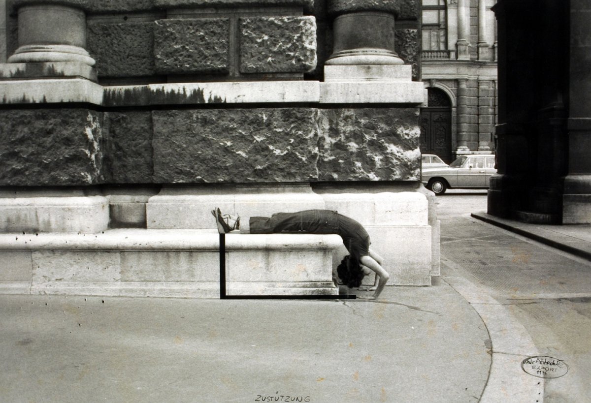 Since the late ‘60s, VALIE EXPORT has concentrated on the body in her work, with the intention of challenging – in a society characterized by a false egalitarianism of gender – contradictions, pressures, and violence toward women. In her practice, performance is a means of investigating physical and psychological limits or is used as a device to destabilize sexist ideologies.