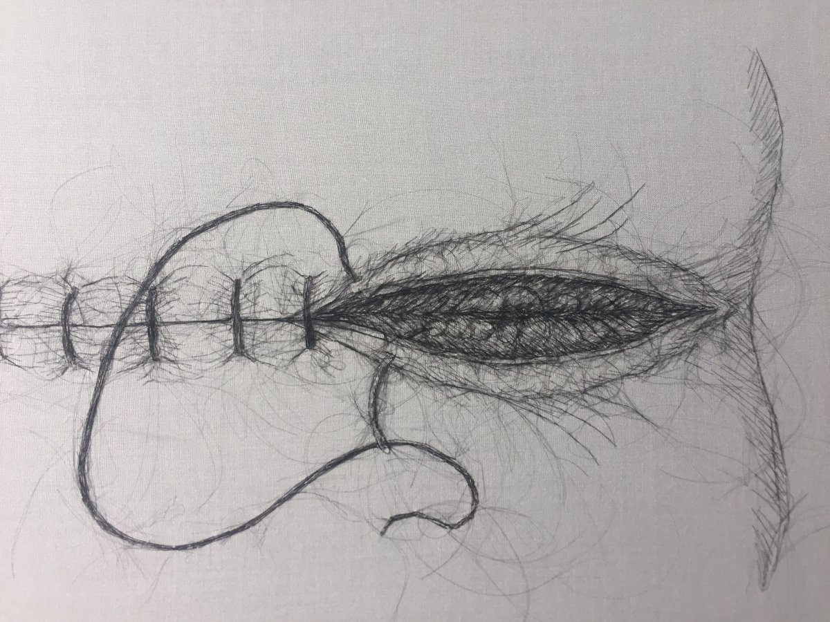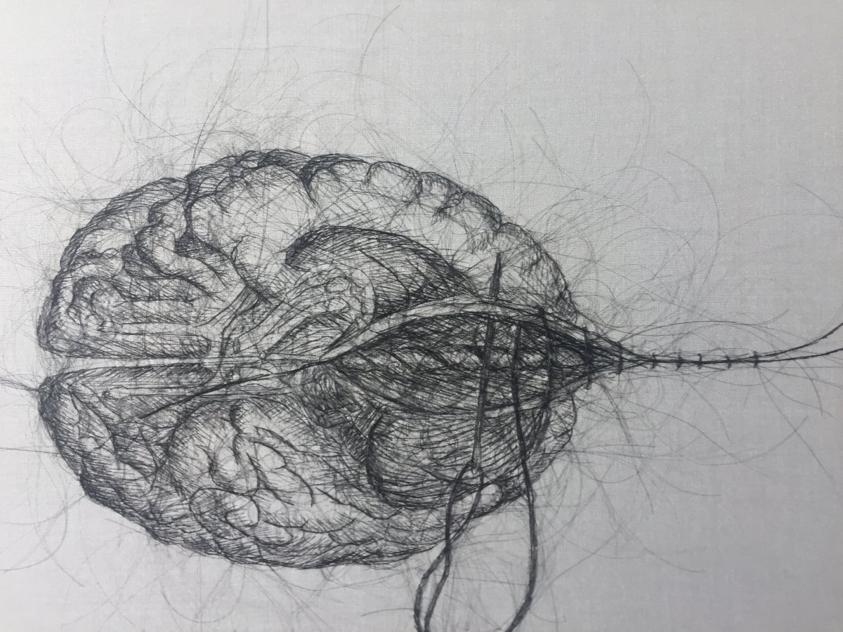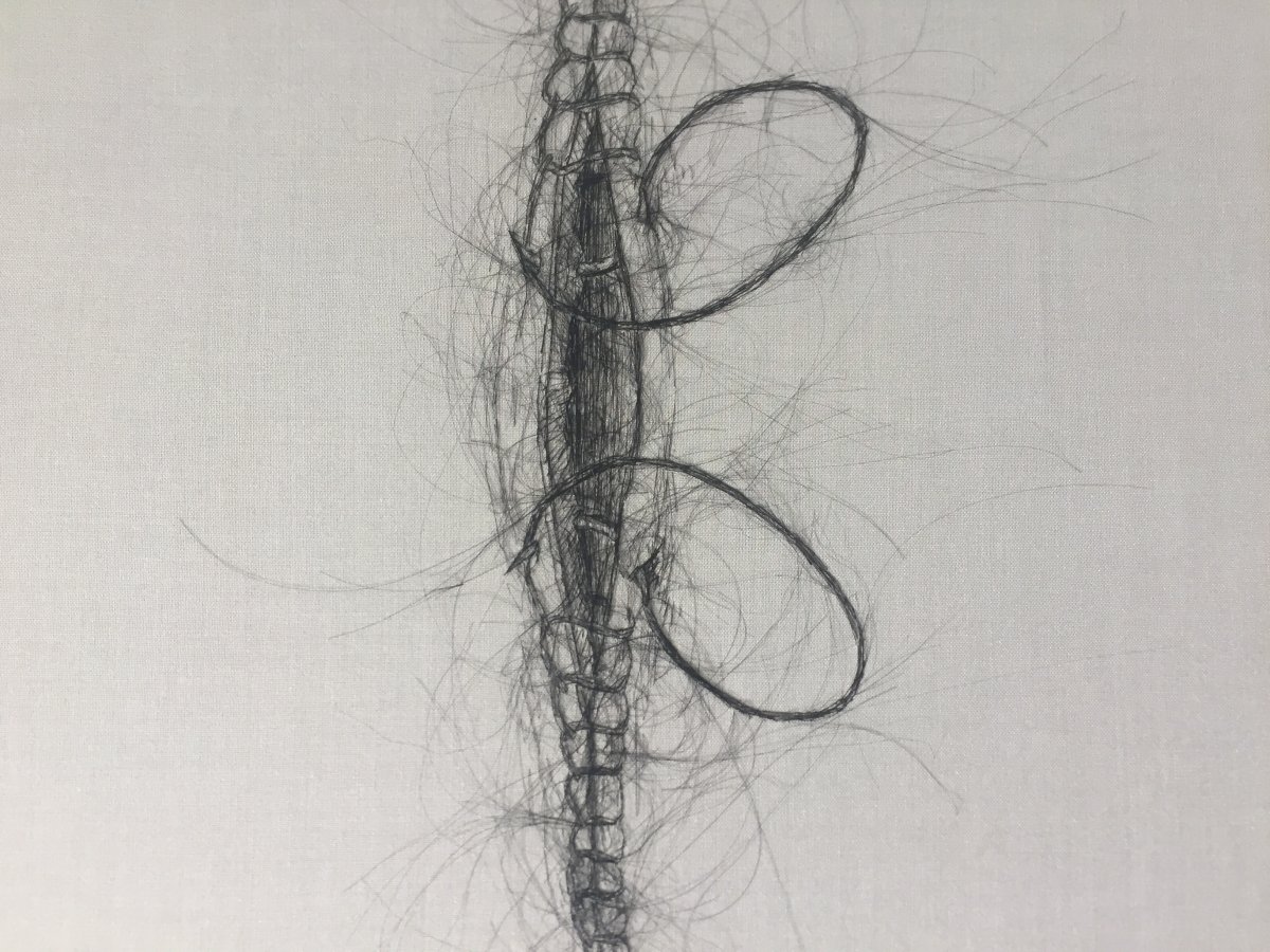 Created recently during the turbulent protesting months in Hong Kong (since June 2019), this body of works examines the act of sewing in the medium of hair embroidery. The artist intentionally subverts the traditional notion of sewing as a feminine activity inhabiting the domestic sphere, and portrays it as an extreme form of protest in the public domain. Along with drawings that allegorise bodily fragmentation and schizophrenia, the artist critiques the physical and psychological experiences of living in the post-colonial city state.