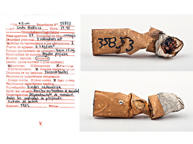 300,000 cigarette butts collected in Mexico city, numbered them, put on wall like butterflies in science musueum, others on floors and tables